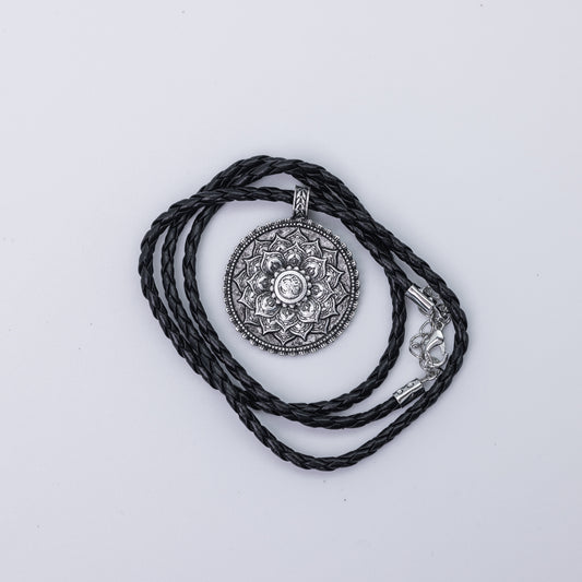 Hálsmen - Lotus með leðuról (silfur)