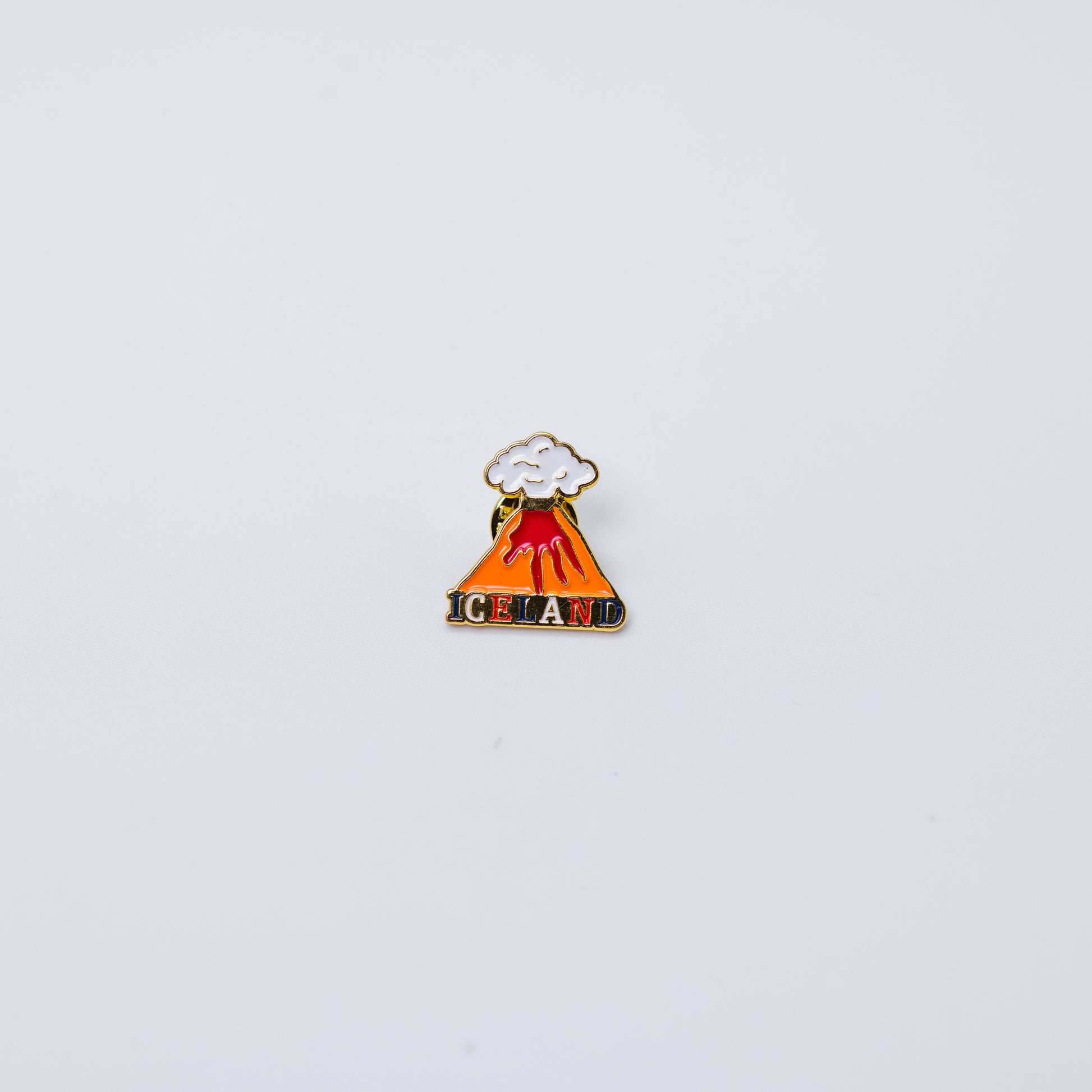 Lapel pin depicting an erupting volcano, capturing the raw power of Icelandic volcanic landscapes in a small accessory.