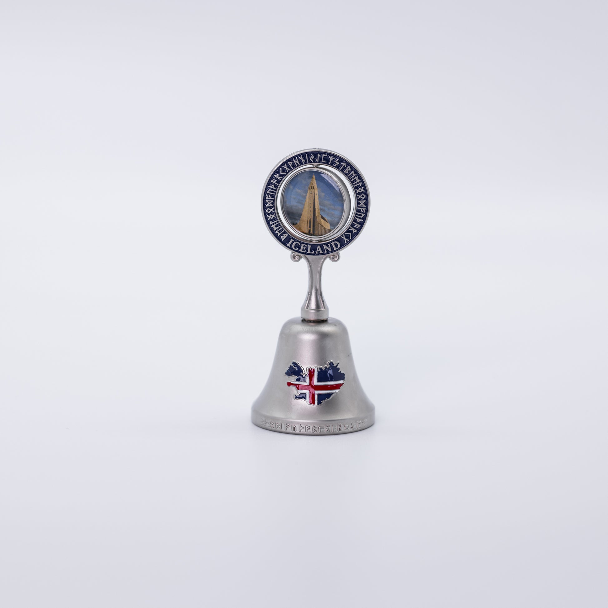 Decorative bell featuring the Hallgrímskirkja church, capturing the spirit of Reykjavík's iconic landmark in a charming accessory.