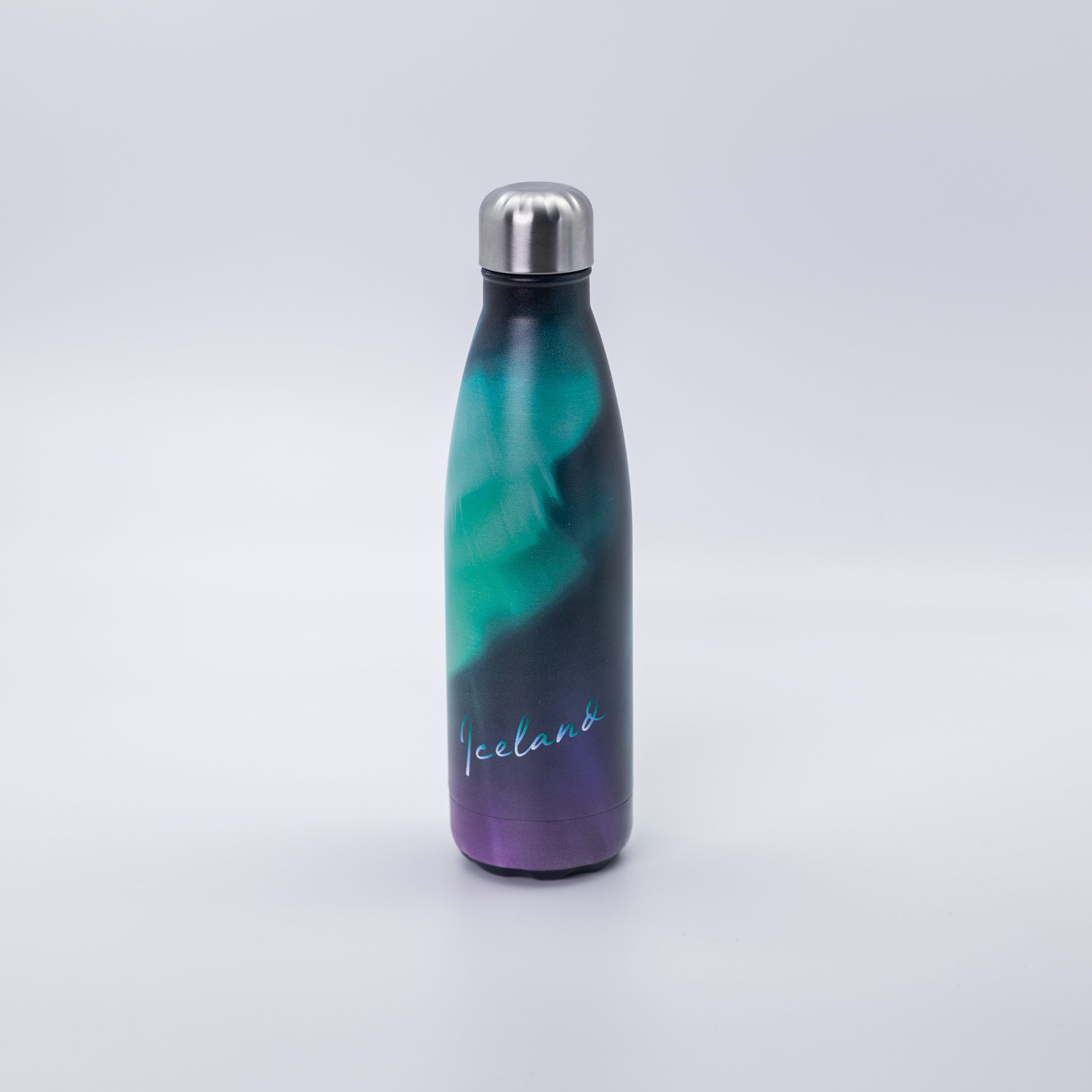 Water bottle depicting the Northern Lights, illuminating your hydration routine with aurora-inspired design.