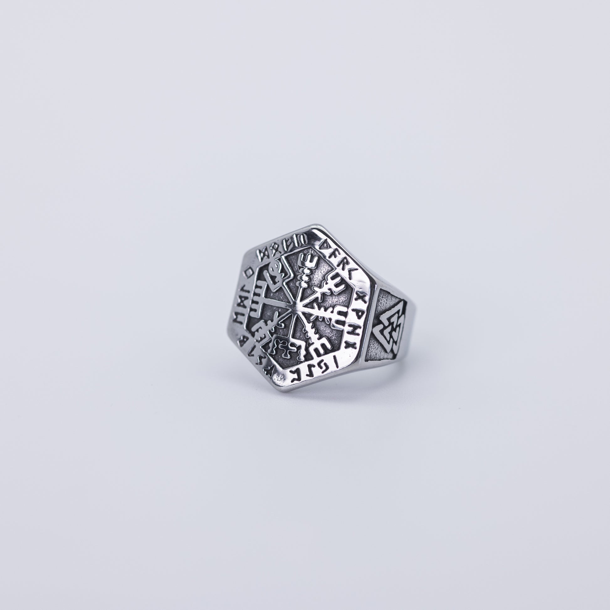 Ring featuring the Vegvísir (Icelandic wayfinder) symbol, guiding the wearer and combining style with tradition.