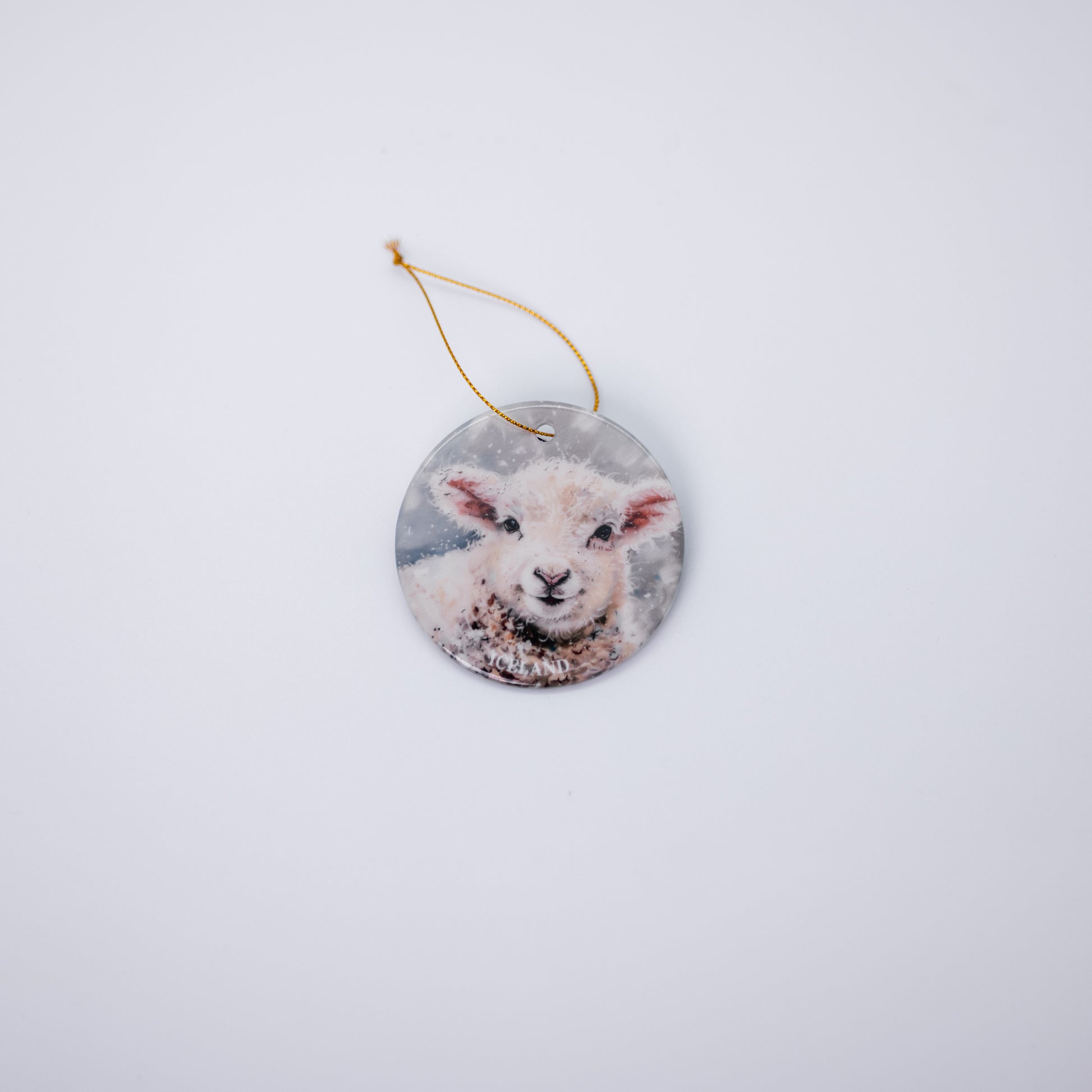 Porcelain Christmas ornament featuring an Icelandic lamb design, adding cozy countryside charm to your holiday decorations