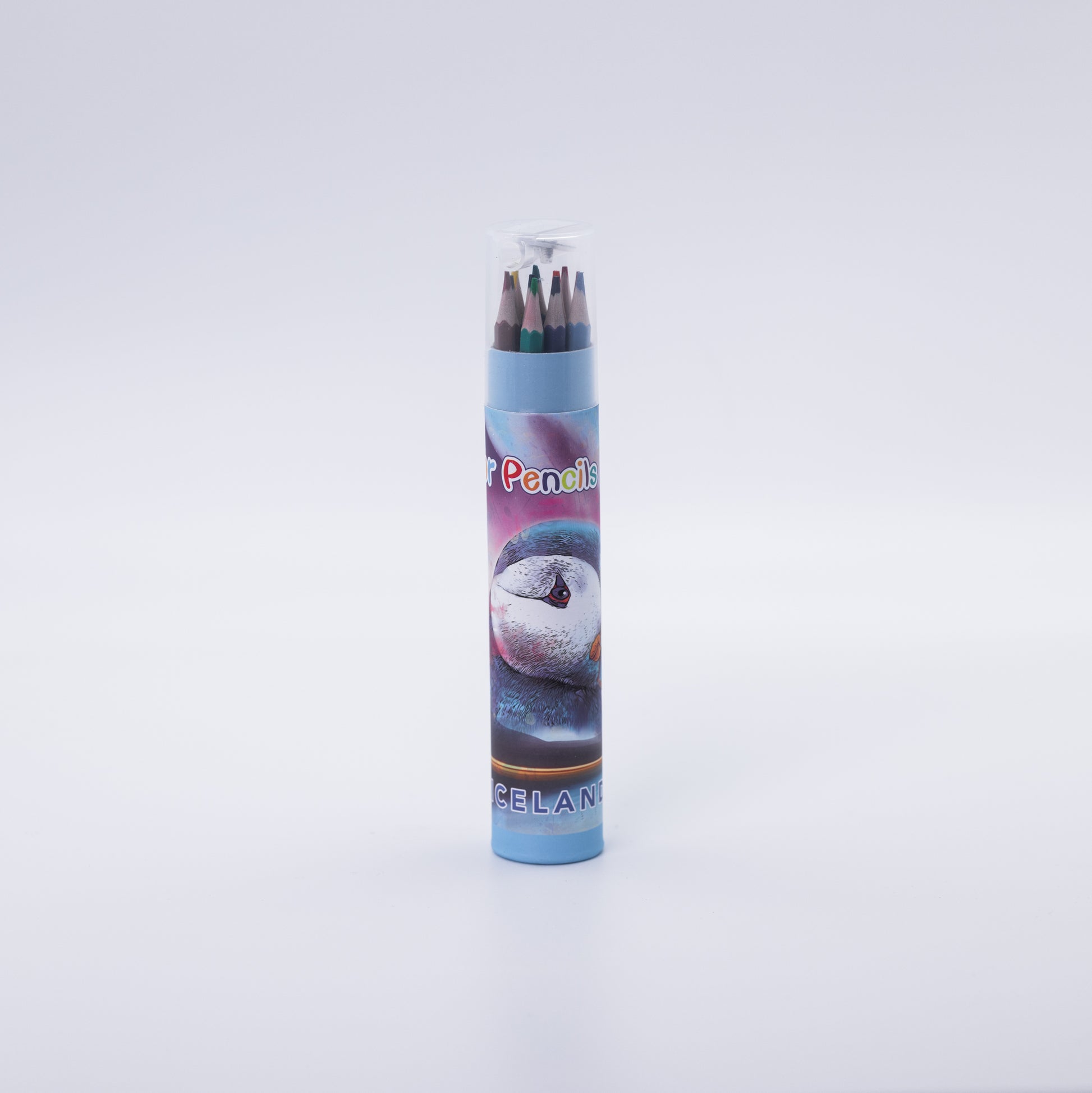 Set of 12 large colored pencils, offering thicker grips and vibrant colors for drawing or coloring, inspired by Iceland's hues