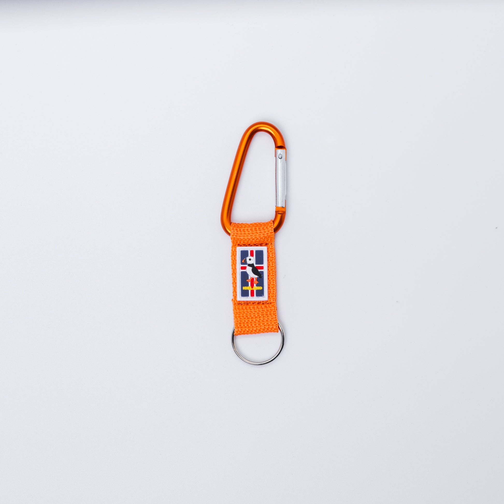 Carabiner keyring in orange color, perfect for keeping keys secure or attaching gear for outdoor activities