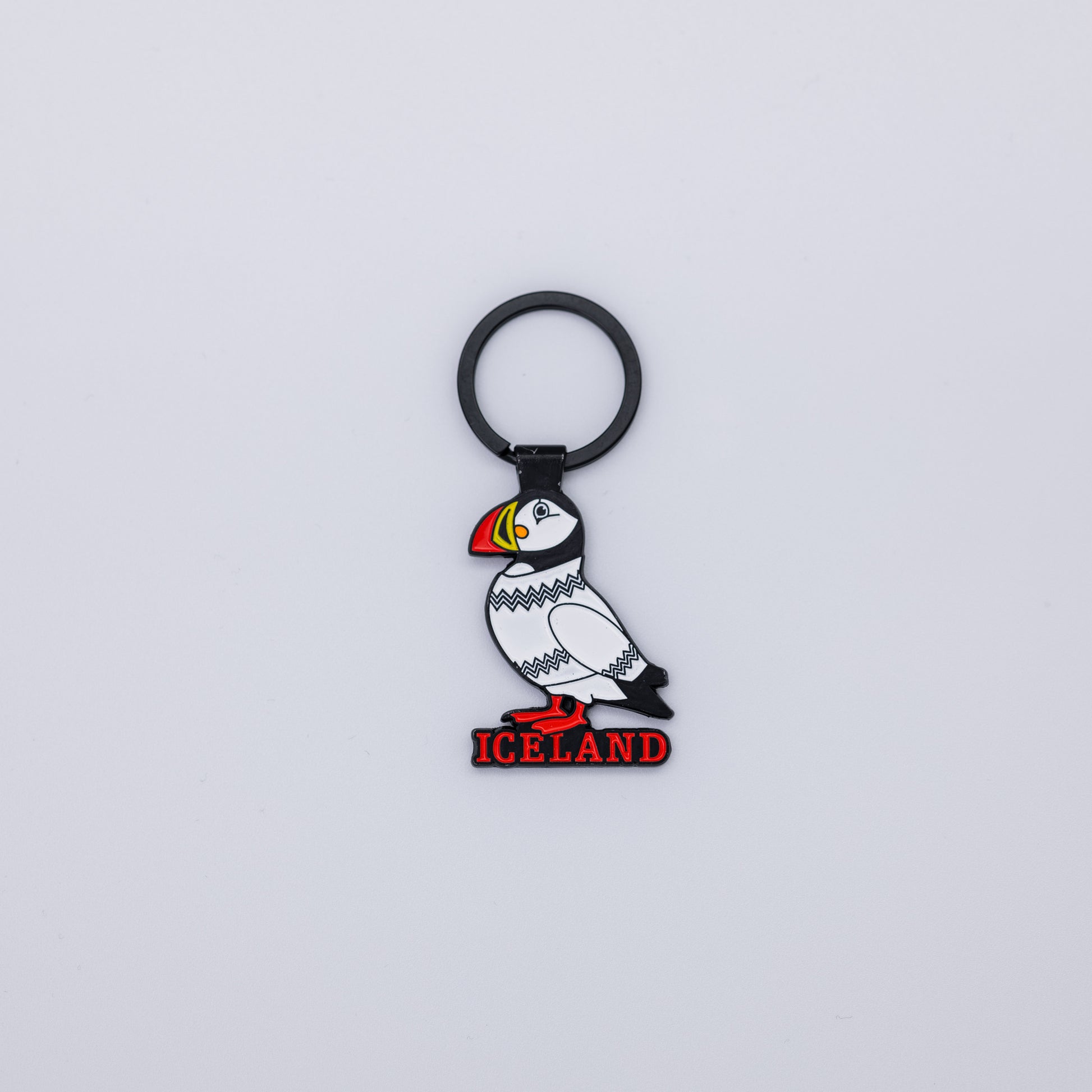 Keychain featuring a puffin wearing a traditional lopapeysa sweater, blending iconic wildlife with Icelandic knitwear heritage.