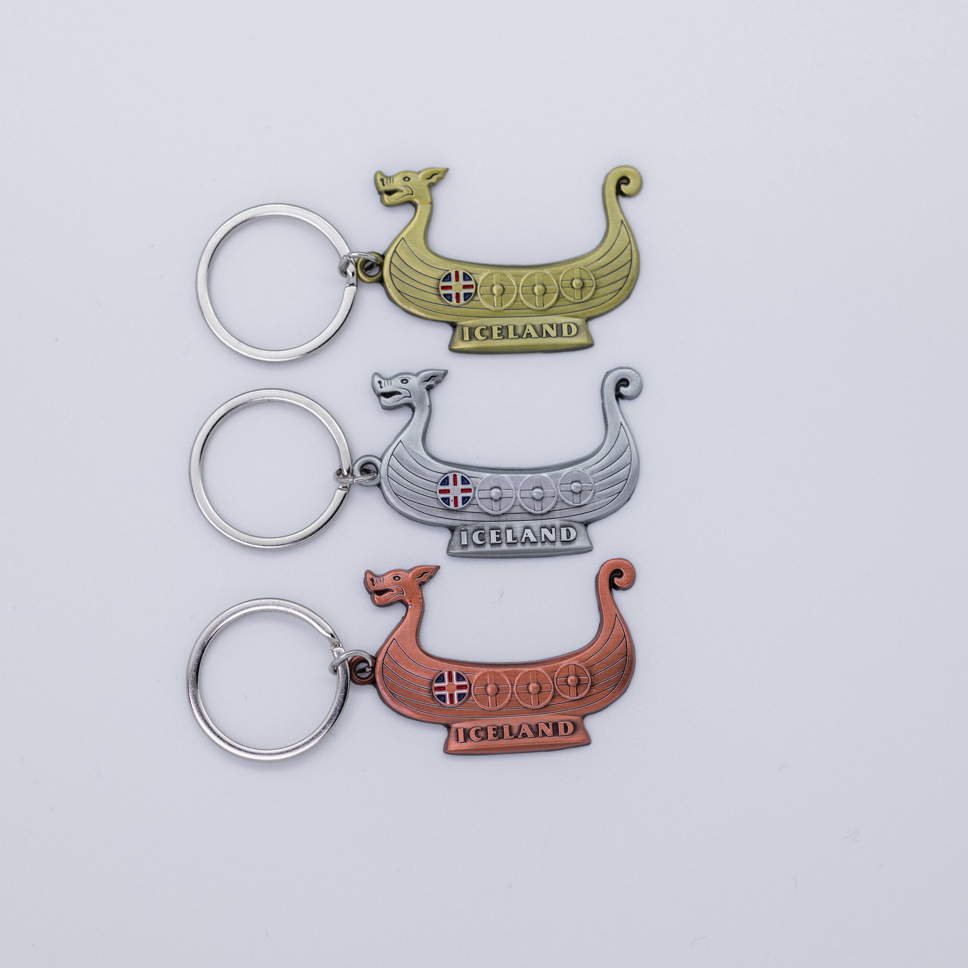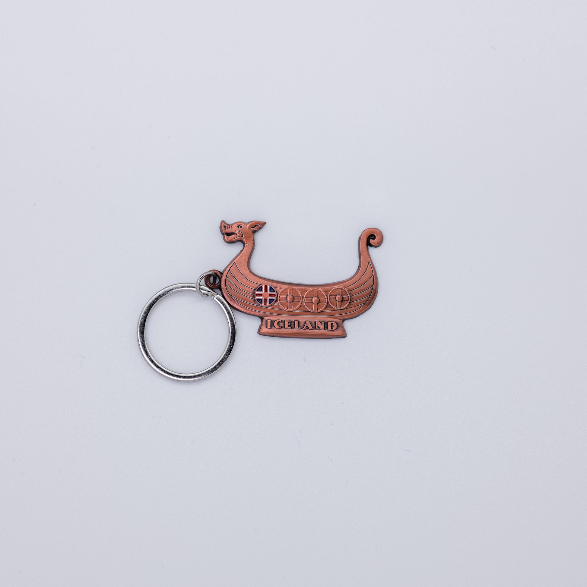 Keychain in rose gold color featuring a Viking ship, adding a touch of Icelandic maritime heritage to your keys