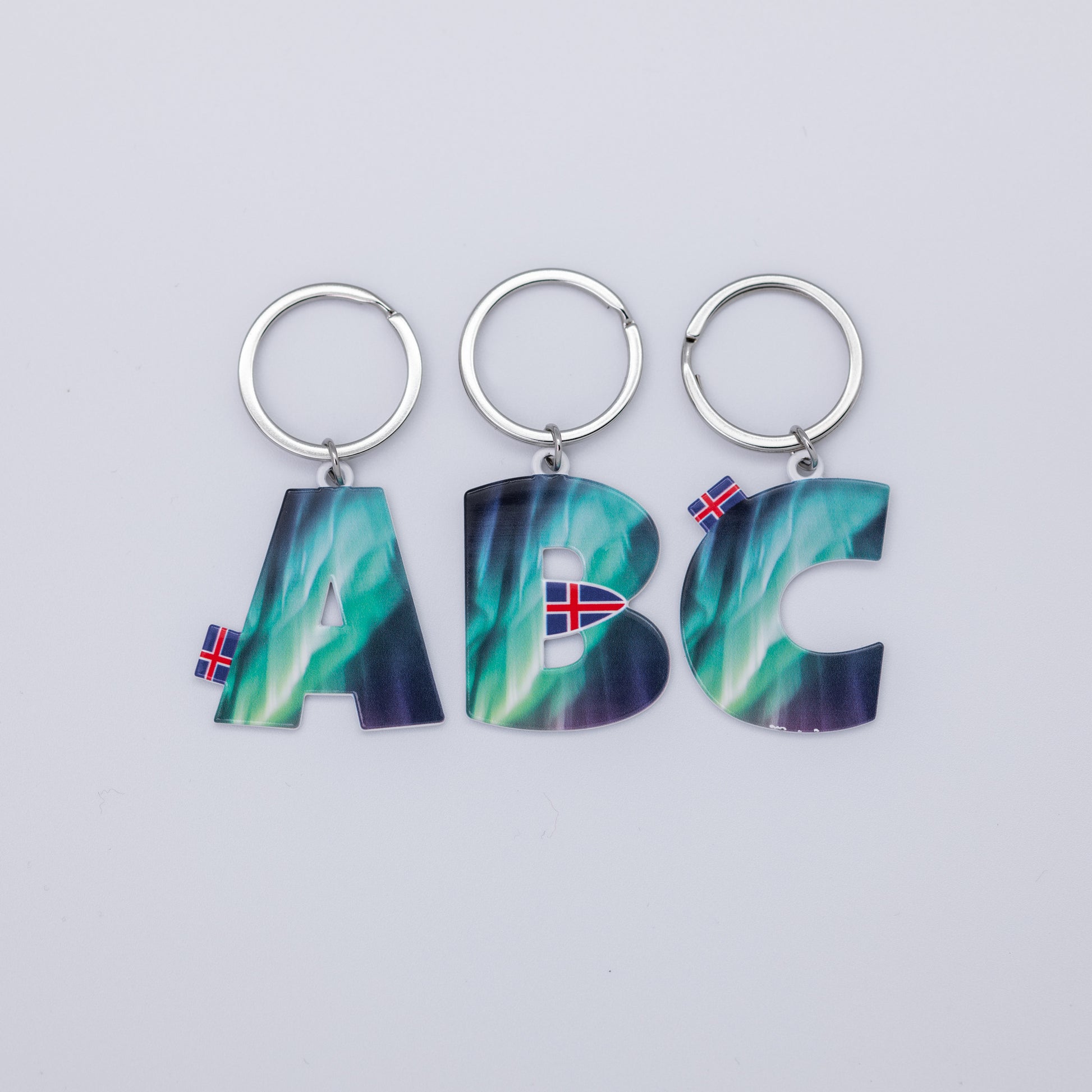 Choose between 26 alphabet letter keychains featuring a Northern Lights design, combining playful learning with Icelandic aurora inspiration.