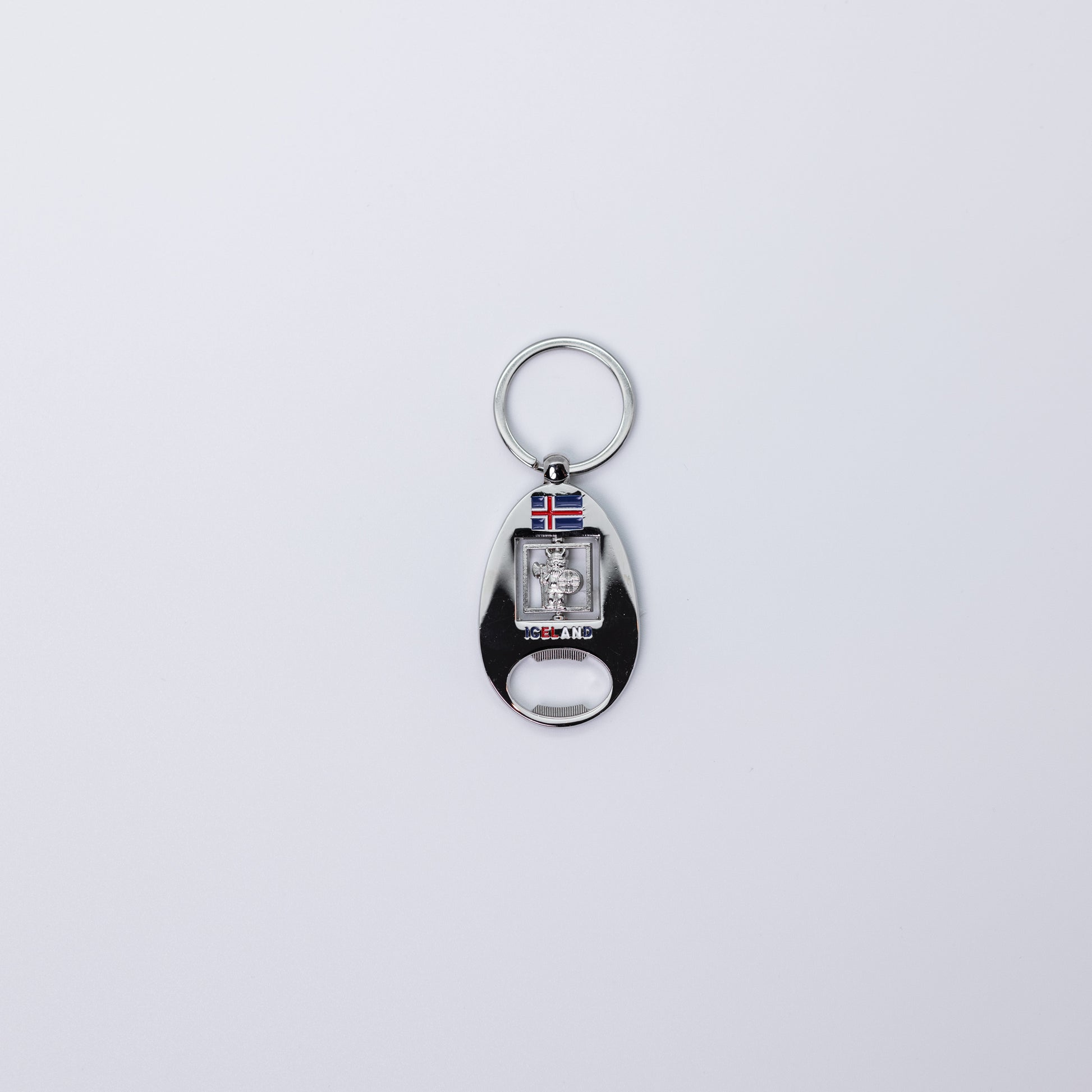 Spinner bottle opener keychain featuring a Viking design, blending practicality with the spirit of Norse warriors.