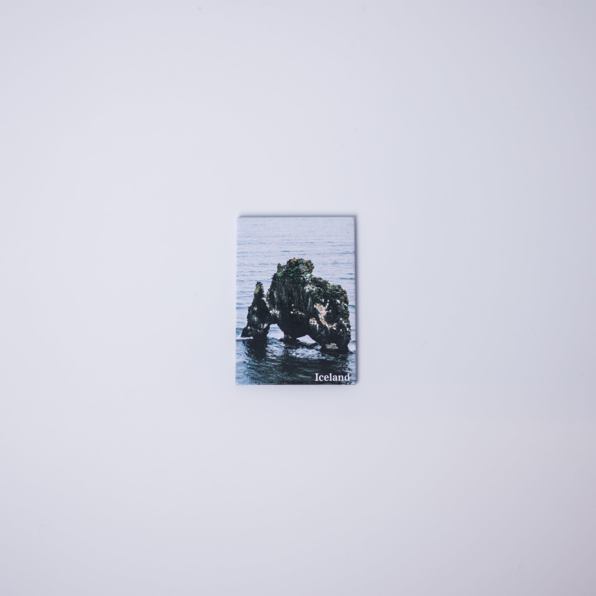 Refrigerator magnet featuring Hvítserkur sea stack, highlighting the dramatic rock formation on Iceland's coast