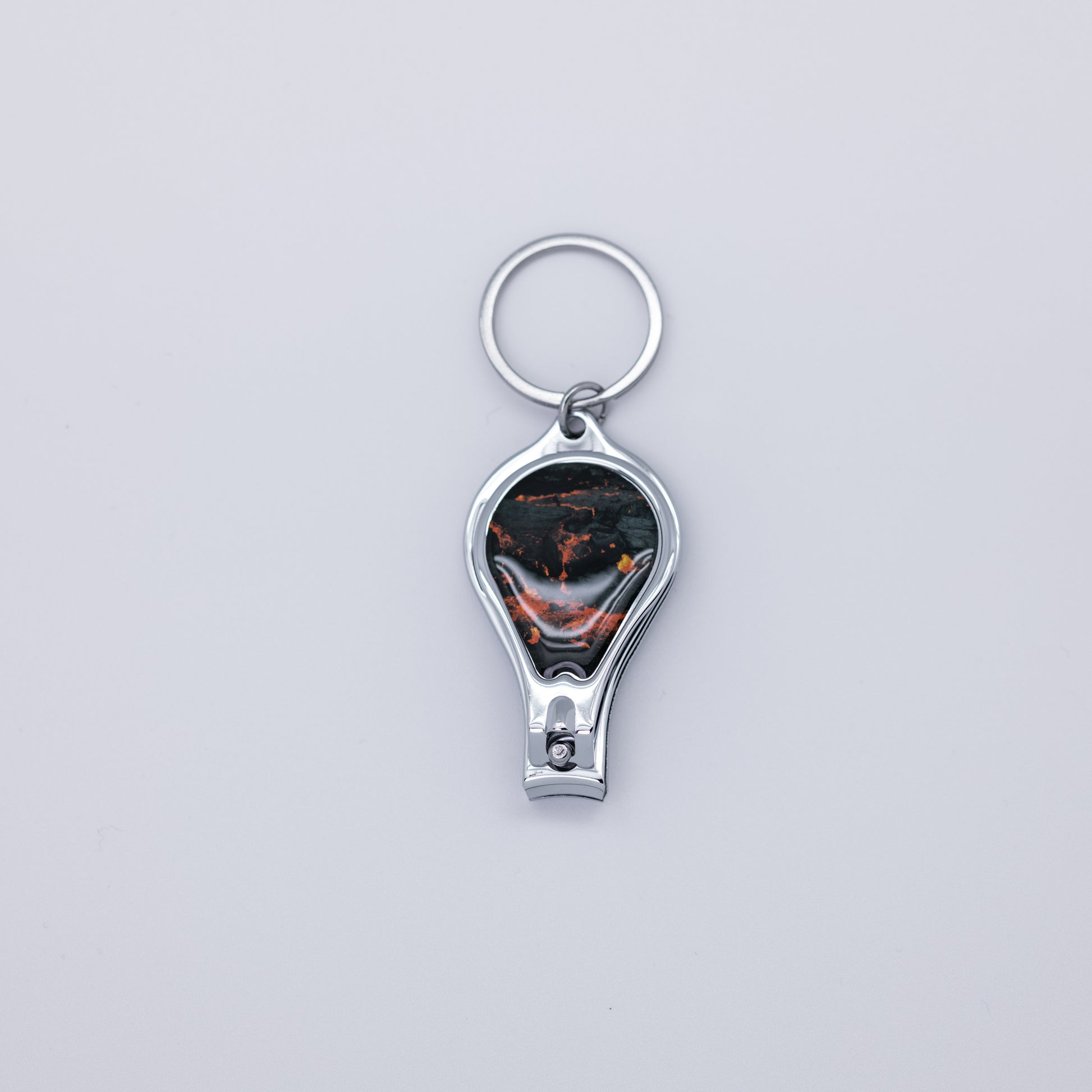Nail clippers featuring a lava design with an integrated bottle opener on the back, combining functionality with volcanic inspiration