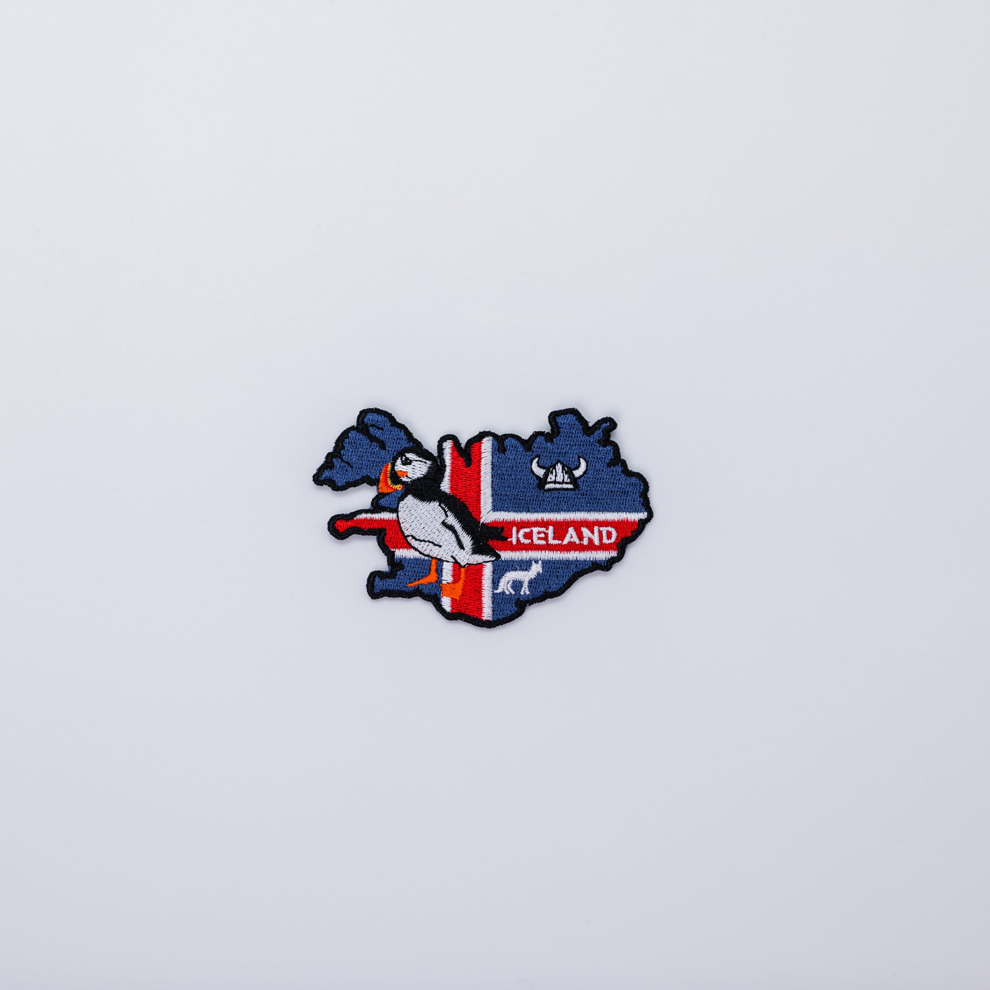 Woven patch featuring the word 'Iceland', ideal for decorating clothing or accessories with national pride