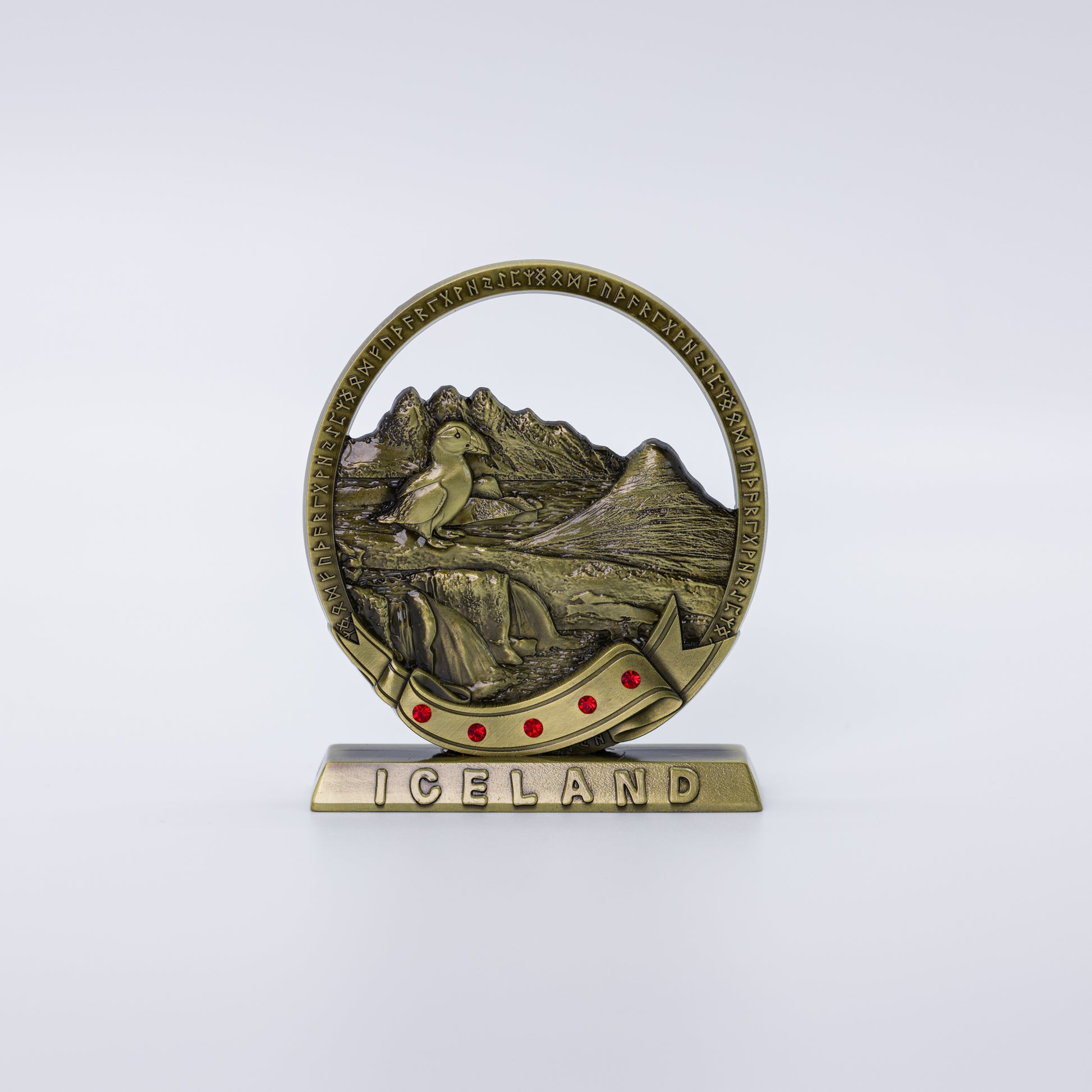 Skrautplatti (gull) - Íslensk náttúra (rauðir steinar)